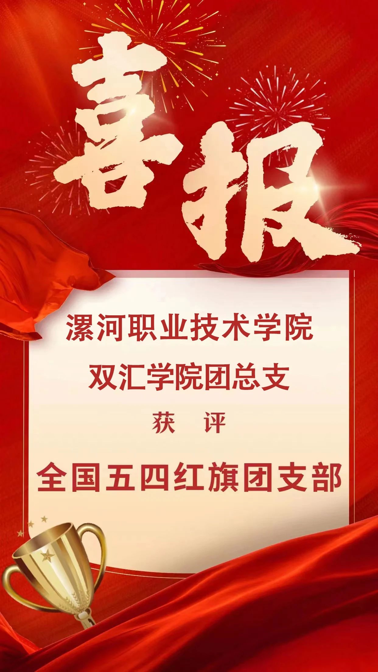 “全国五四红旗团支部”是共青团中央表彰全国优秀青年集体的最高荣誉,是广大青年志愿者一心向党、奋斗不息的真实写照。双汇公司团总支获此殊荣是团中央、团省委对公司共青团工作的肯定与鼓励,公司各级共青团组织和广大团员青年将以此殊荣为动力,满怀热忱、踔厉奋发,紧紧凝聚在党的旗帜下,听党号令、跟党奋斗,发扬“党有号召、团有行动”的优良传统,用实际行动践行“请党放心、强国有我”的青春誓言,为公司高质量发展贡献自己的青春力量!