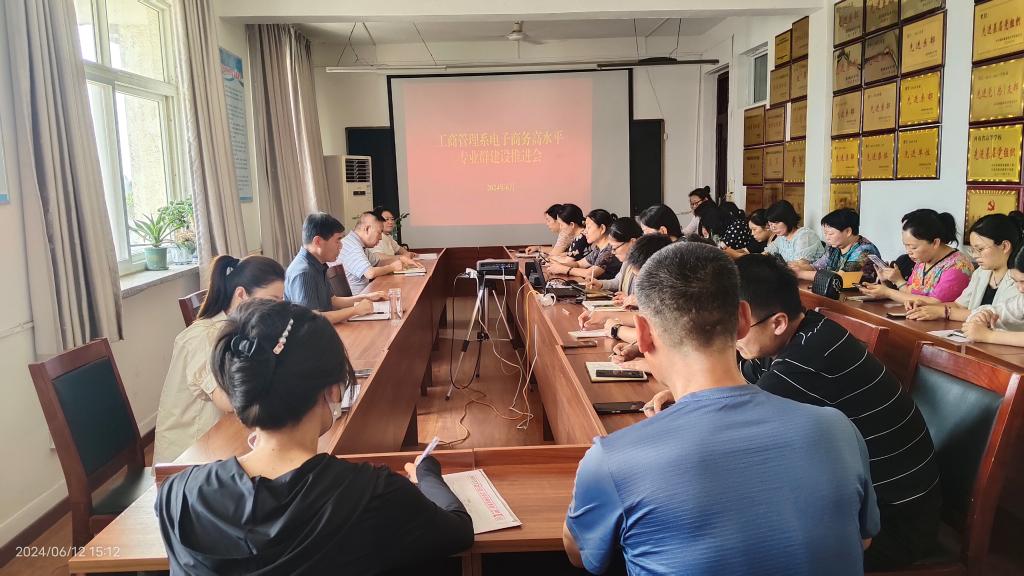 2024年6月12日下午,工商管理系全体教师在系会议室举办了电子商务高水平专业群建设推进会。