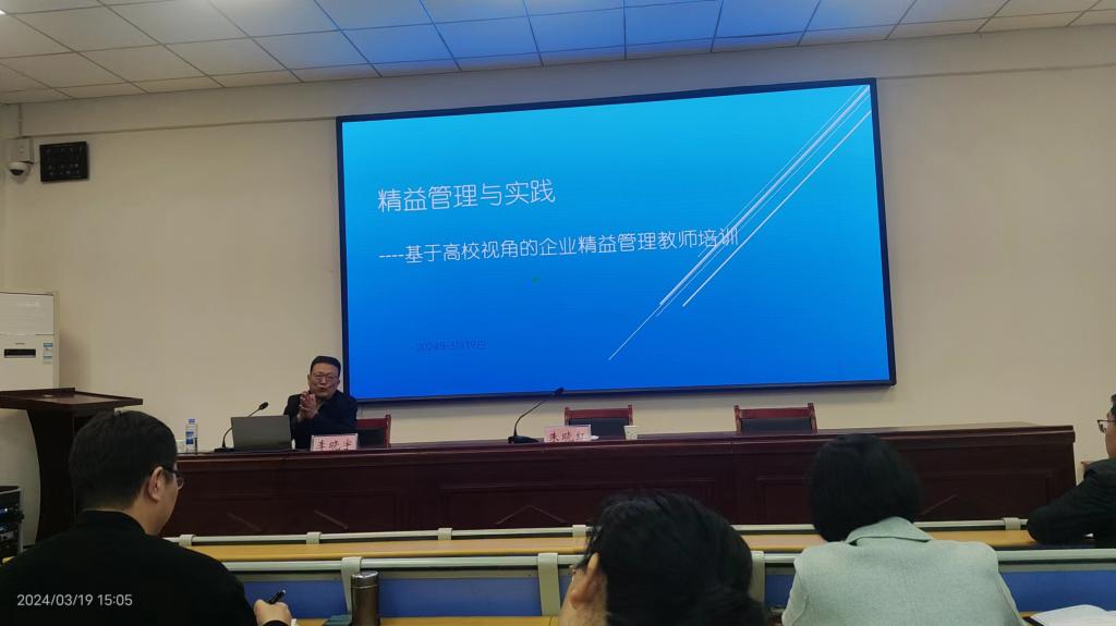 2024年3月19日下午,太阳成集团tyc在公司2107会议室举办了“精益管理与实践——基于高校视角的企业精益管理”主题教师培训会。培训会由李晓宇博士(教授)担任主讲,公司副董事长朱晓红主持,工商管理系领导班子成员安国彦、李文静、李子剑及专业课教师共一行十八人参加了培训会。