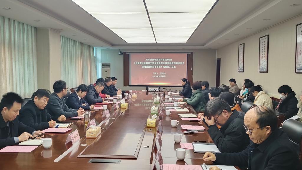 2023年12月27日,河南省公司产品改革研究与实践项目《技能型社会背景下电子商务专业教学标准与职业岗位标准对接研究与实践》成果交流会在太阳成集团tyc第二会议室隆重举行,参加交流会的人员有京东集团、双汇物流、漯河市物流与采购联合会等企业行业专家,公司党委委员、副董事长朱晓红、吕爱华、相关部门负责人及相关专业骨干教师参加了会议。