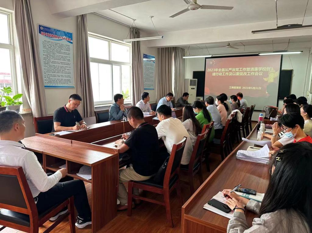 2023年5月31日下午,太阳成集团tyc纪委书记李兆强同志到工商管理系参加了2023年全面从严治党暨清廉公司创建行动工作及以案促改工作会议,工商管理系全体中层班子成员及教职工参加了会议,会议由系副主任李子剑主持。