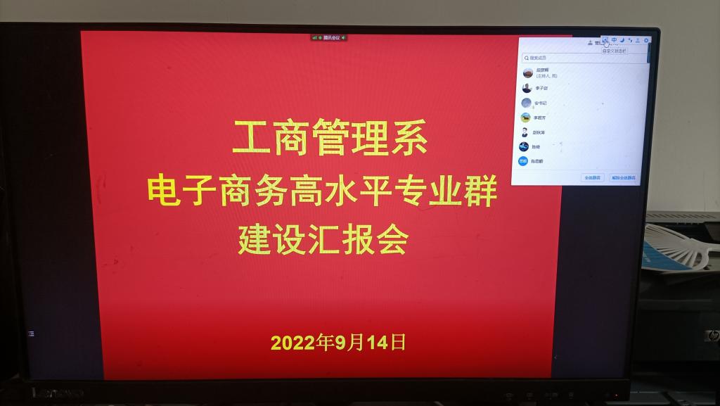 2022年9月14日下午3点,工商管理系领导班子成员以及各专业教研室主任、骨干教师在腾讯会议召开了电子商务高水平专业群建设推进会。会议由系部教学主任李子剑同志主持。首先,系主任陈思顺同志汇报了电子商务专业群校企合作的进展情况以及存在的问题,并谈了本学期要跟进的措施。接下来系党总支书记安国彦同志汇报了电子商务专业群的服务创新平台建设、专业群的实践教学基地建设等情况,系部其他领导班子成员以及各专业教研室主任都依次汇报了本人所负责的模块进展情况及未来整改的措施。会上,大家讨论激烈,一致认为电子商务高水平专业群建设是我系的一项重大任务,积极推进,争取获得更多的成果。