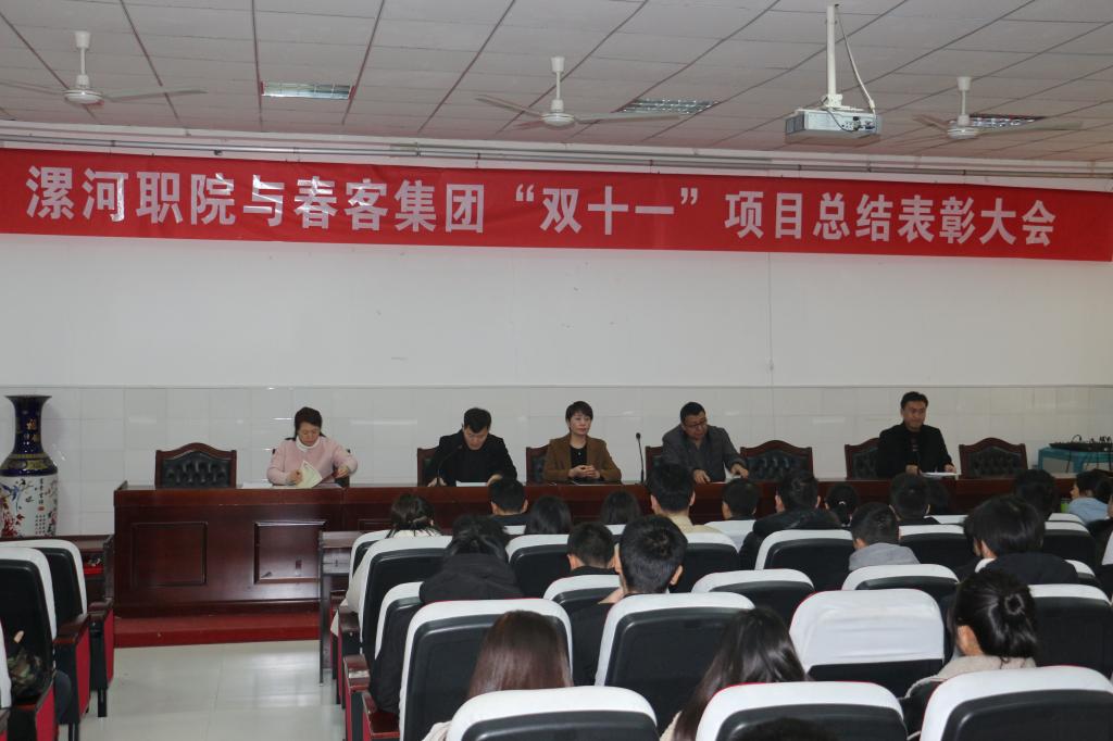 2019年12月6日上午,工商管理系在公司3101会议室举办了漯河职院与杭州春客集团“双十一”安踏营销项目总结表彰大会,工商管理系领导班子、2018级电子商务专业和网络营销专业参加项目的员工及部分教师参加了表彰会。会议由系团总支书记赵秋涛主持。