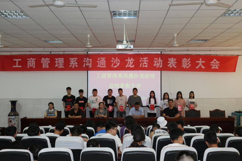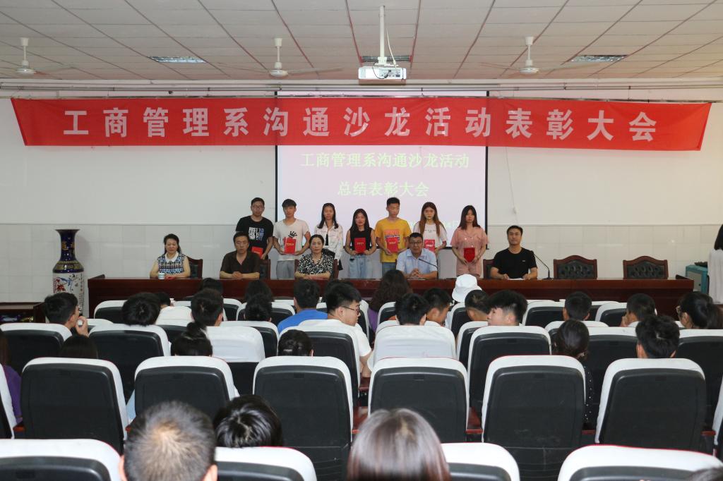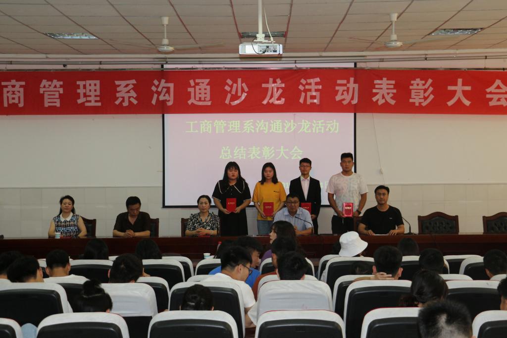 2019年6月14日下午,工商管理系在公司3101会议室举行了2018——2019学年第2学期沟通沙龙活动表彰大会,工商管理系主任夏俊华、系党总支书记安国彦、副主任李子剑、办公室主任黄晓喆及商务管理专业教师、2018级全体员工参加了表彰会,表彰会由系团总支书记赵秋涛主持。