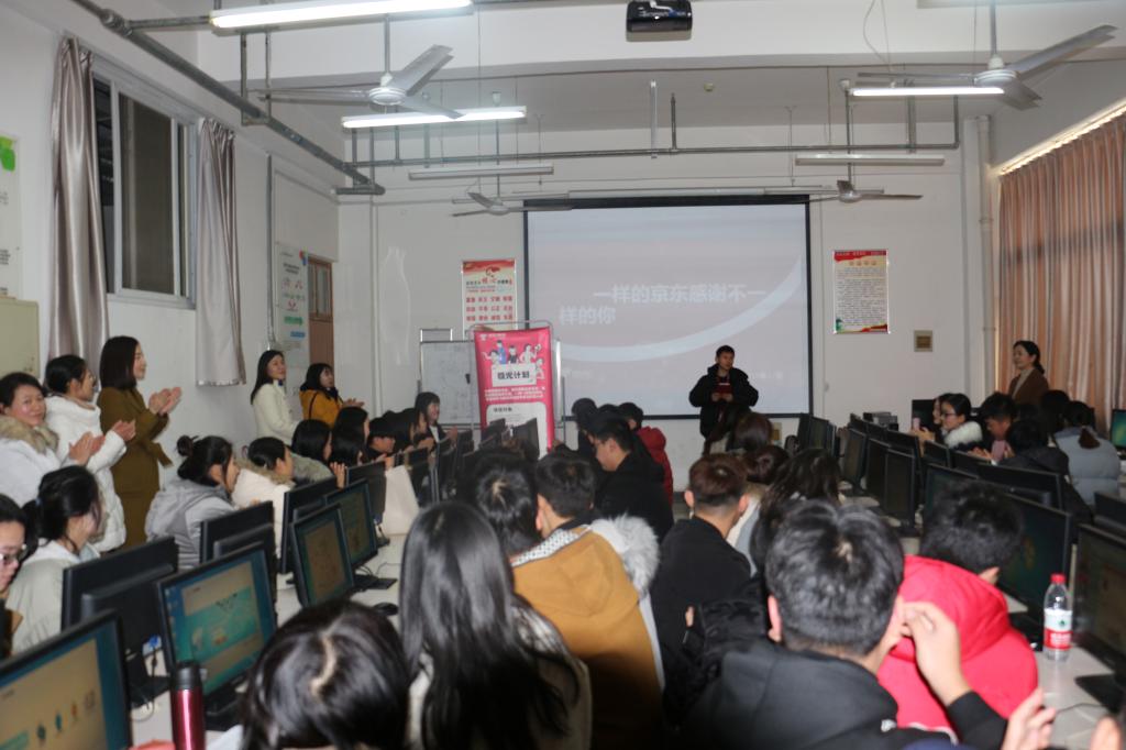 2018年12月18日下午,应京东华中区之约,工商管理系在二号实训楼2607室举行了京东实习总结会,京东华中区仓储部代表王青霞、人力资源部代表刘学强及工商管理系主任夏俊华、办公室主任黄晓喆、物流管理专业部分教师和2017级物流管理专业全体员工参加了总结会。