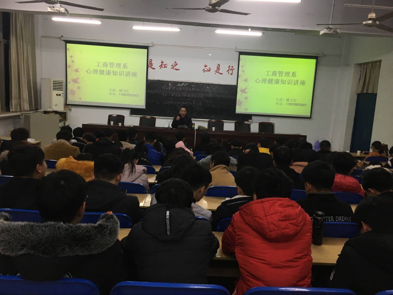 2017年12月22日,工商管理系邀请公司心理健康专家柳卫民老师在2号教学楼2107教室为大家进行了一场心理健康讲座,工商管理系2017级电子商务一班、电子商务二班、商务管理班、物流管理班全体员工参加了讲座。