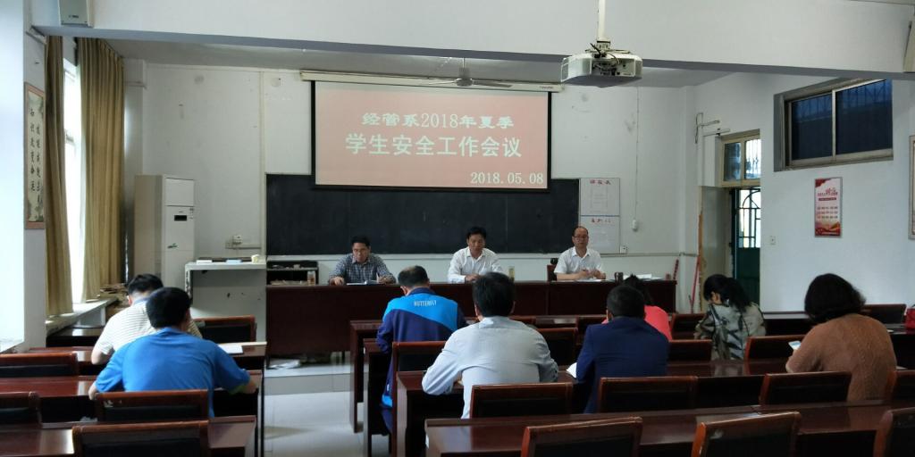 5月8日下午,经济贸易与管理系在1301会议室召开了2018年夏季员工安全工作会议,副主任李炎超主持会议,系主任兰涛、系党总支书记张改亮和全体辅导员参加了会议。