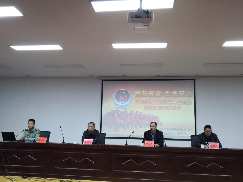 11月28日,经管系在保卫处支持下邀请河南省园安防火服务中心曹宇飞教官开展消防安全专题培训会。副经理代骅同志出席会议并讲话。保卫处处长王洪克及保卫处消防科科长牛春雨陪同参加。会议由经管系党总支书记张改亮主持。系近400名师生代表参加聆听。