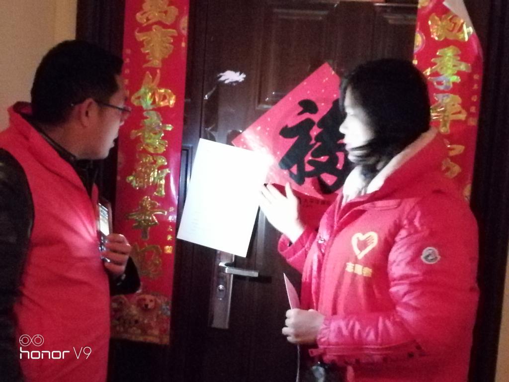 12月6日晚6:30,双汇公司老师到分包社区——建西社区兰乔迪亚小区开展创文入户宣传活动。