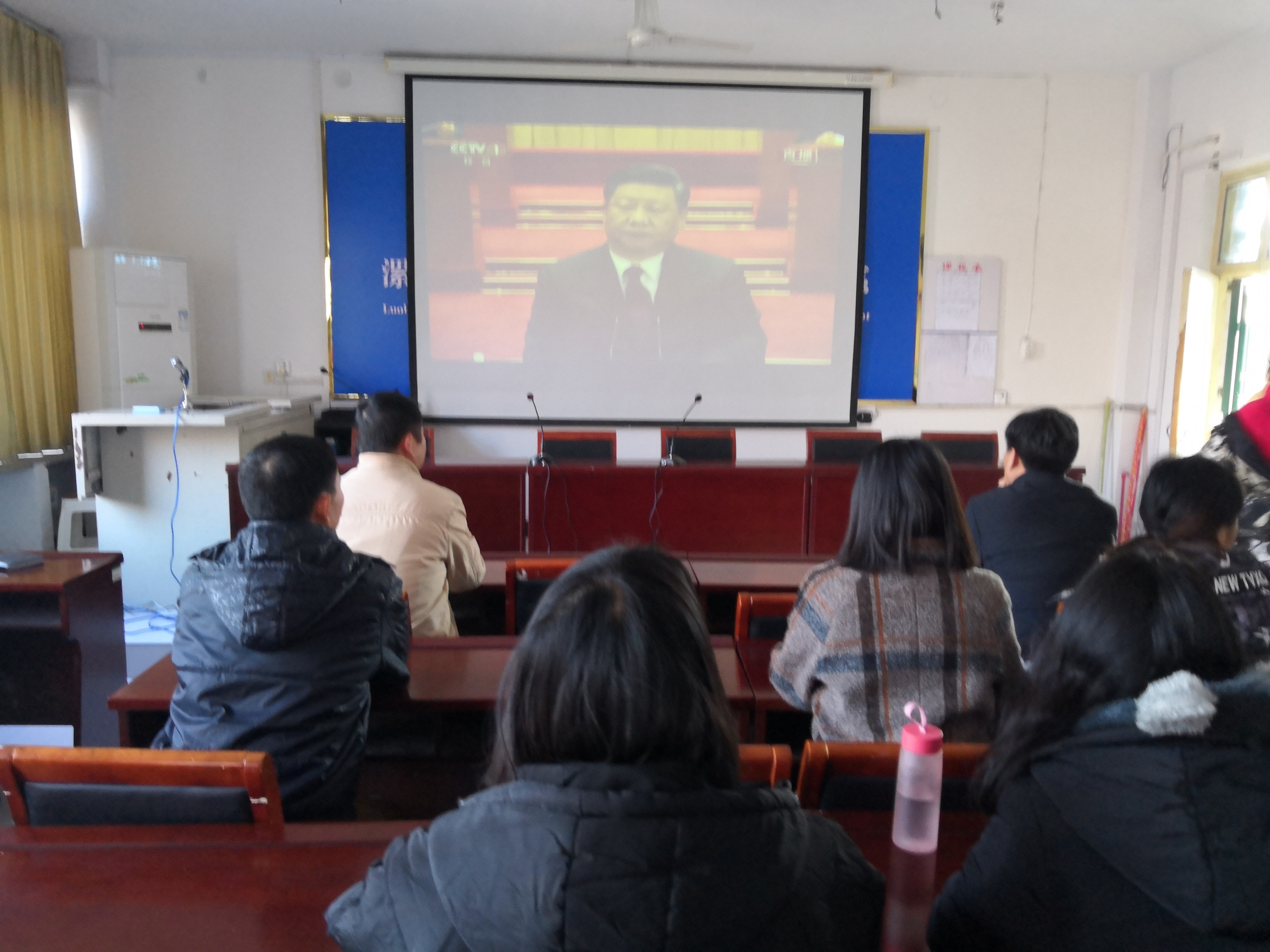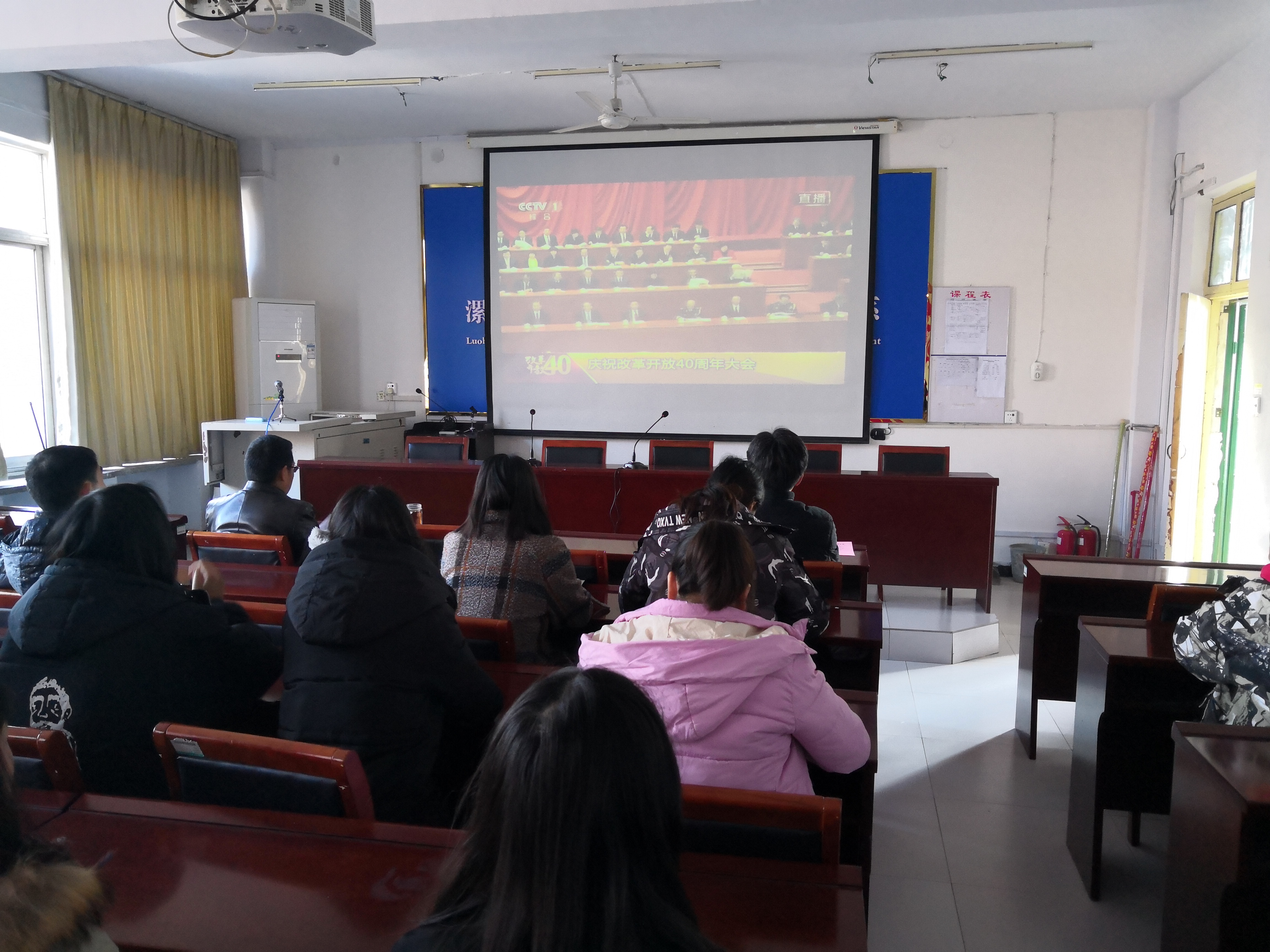 12月18日上午10点,双汇公司组织老师、员工预备党员和入党积极分子共30多人,在1301会议室观看了庆祝改革开放40周年大会。